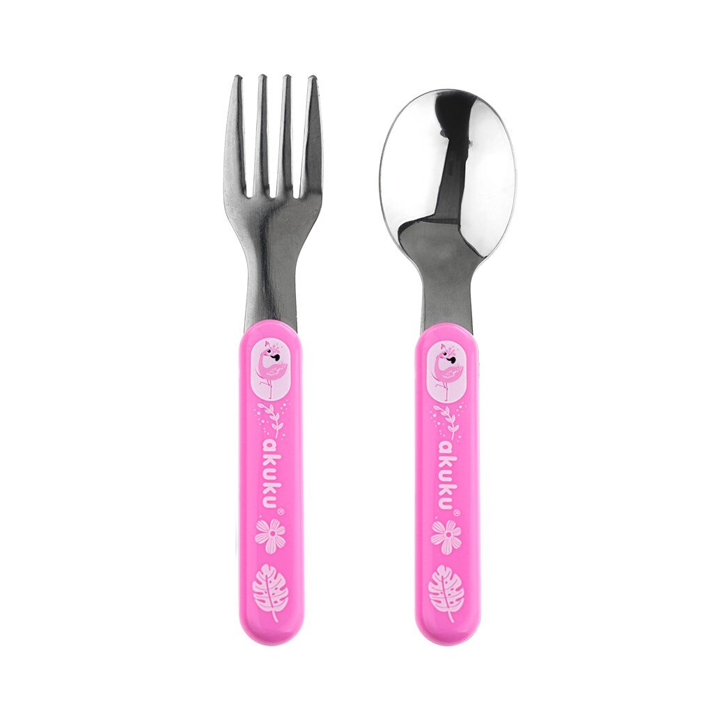 AKUKU 2 ks dětská nerezová lžíce a vidlička růžová