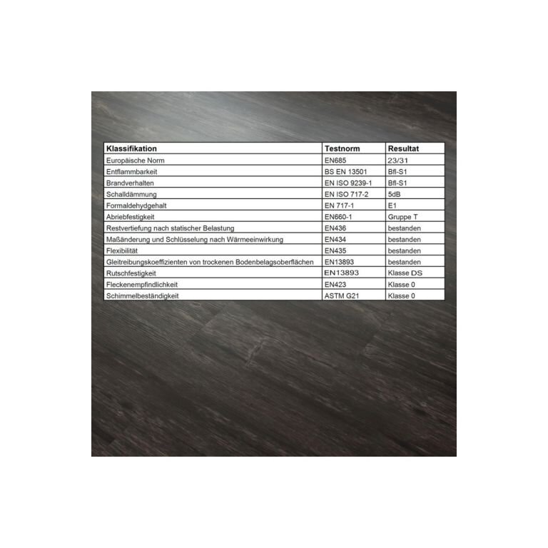 Tyto Stilista® dekorativní desky odpovídají všem normám týkajících se hořlavosti (BS EN 13501), obsahu formaldehydu (EN 717-1), odporu (EN660-1), protiskluznosti (DIN 51130), odolnosti proti skvrnám (EN423), odolnosti proti plísním (ASTM G21) a mnoho dalšího. Je tedy schválena evropskou normou pro klasifikaci pružných podlahových krytin.